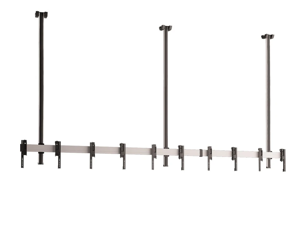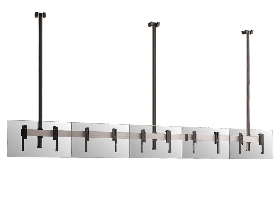 Потолочное крепление для видеостены 1х5 Vogels C1530S. арт 8893 из дисплеев с диагональю экрана 46-50''. Альбомная ориентация. Стандарт VESA от 100x100 до 600x400 мм. Наклон +7°/-3°. Возможна регулировка в трех плоскостях. Длина штанги - 300 см. Предусмотрен скрытый кабель канал CIS. Допустимая нагрузка - 240 кг. Мах масса одного дисплея - 48 кг. Цвет серебристый.