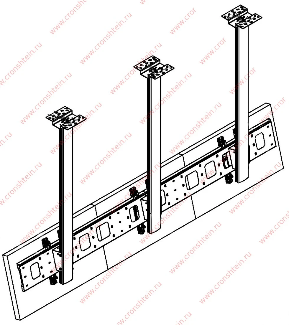 Данное крепление применяется в случаях, когда нет возможности закрепить дисплеи на потолке или при создании видеоперегородки в магазинах, переговорных, гостиницах и т.д. Вертикальные столбы каркаса изготовлены из специального профиля, обеспечивающего регулировку по всему диапазону высот. Глубина крепления не менее 800 мм. – вы спокойно сможете разместить за дисплеями оборудование и источники сигнала и питания. После монтажа такого крепления для видеостены, все элементы метало-каркаса,легко декорируются. Юстировка дисплеев (выравнивание) осуществляется в трех плоскостях, в диапазоне 25 мм. с помощью системы микро регулировкиiwall. Шаг микро регулировки: 0,1 мм. Технологический зазор между панелями должен составлять не менее 1 мм. Крепление универсальное и подходит для дисплеев любых производителей. В комплекте крепления прилагается инструкция и чертеж разработанная именно под ваш случай и задачу.