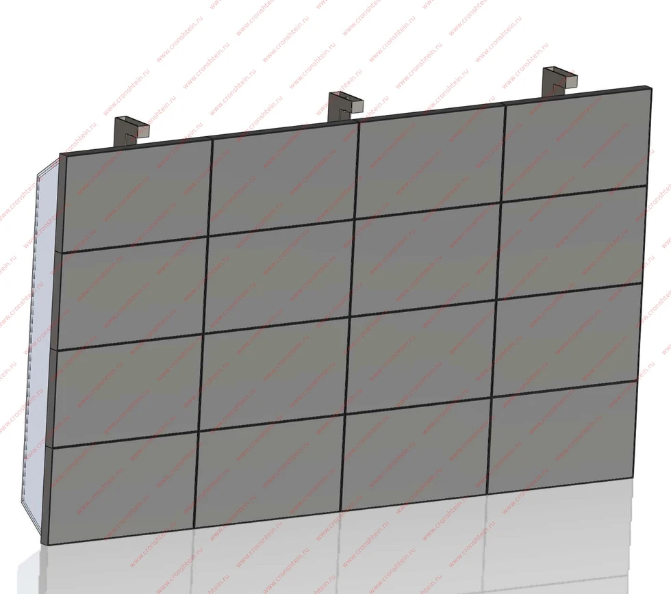 Данное крепление применяется в случаях, когда нет возможности закрепить дисплеи на потолке или при создании видеоперегородки в магазинах, переговорных, гостиницах и т.д. Вертикальные столбы каркаса изготовлены из специального профиля, обеспечивающего регулировку по всему диапазону высот. Глубина крепления не менее 800 мм. – вы спокойно сможете разместить за дисплеями оборудование и источники сигнала и питания. После монтажа такого крепления для видеостены, все элементы метало-каркаса,легко декорируются. Юстировка дисплеев (выравнивание) осуществляется в трех плоскостях, в диапазоне 25 мм. с помощью системы микро регулировкиiwall. Шаг микро регулировки: 0,1 мм. Технологический зазор между панелями должен составлять не менее 1 мм. Крепление универсальное и подходит для дисплеев любых производителей. В комплекте крепления прилагается инструкция и чертеж разработанная именно под ваш случай и задачу.