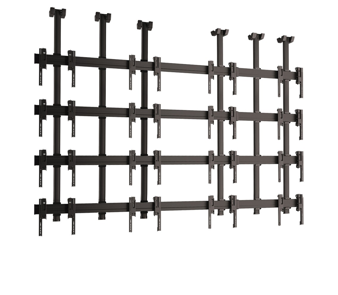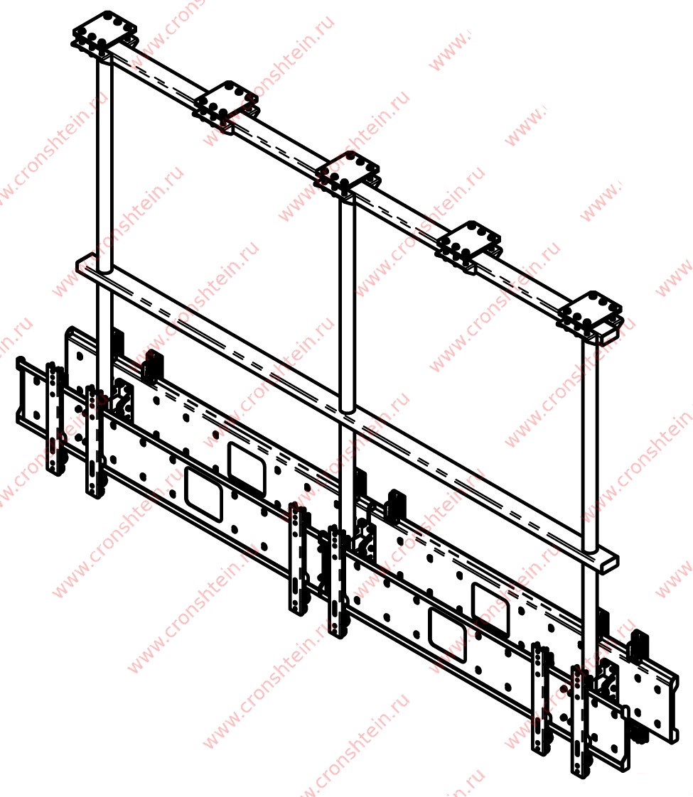 Данное крепление применяется в случаях, когда нет возможности закрепить дисплеи на потолке или при создании видеоперегородки в магазинах, переговорных, гостиницах и т.д. Вертикальные столбы каркаса изготовлены из специального профиля, обеспечивающего регулировку по всему диапазону высот. Глубина крепления не менее 800 мм. – вы спокойно сможете разместить за дисплеями оборудование и источники сигнала и питания. После монтажа такого крепления для видеостены, все элементы метало-каркаса,легко декорируются. Юстировка дисплеев (выравнивание) осуществляется в трех плоскостях, в диапазоне 25 мм. с помощью системы микро регулировкиiwall. Шаг микро регулировки: 0,1 мм. Технологический зазор между панелями должен составлять не менее 1 мм. Крепление универсальное и подходит для дисплеев любых производителей. В комплекте крепления прилагается инструкция и чертеж разработанная именно под ваш случай и задачу.