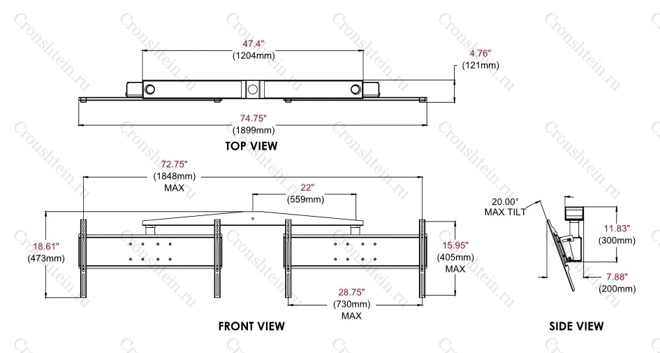 • Максимальная допустимая масса одного дисплея – 113 кг