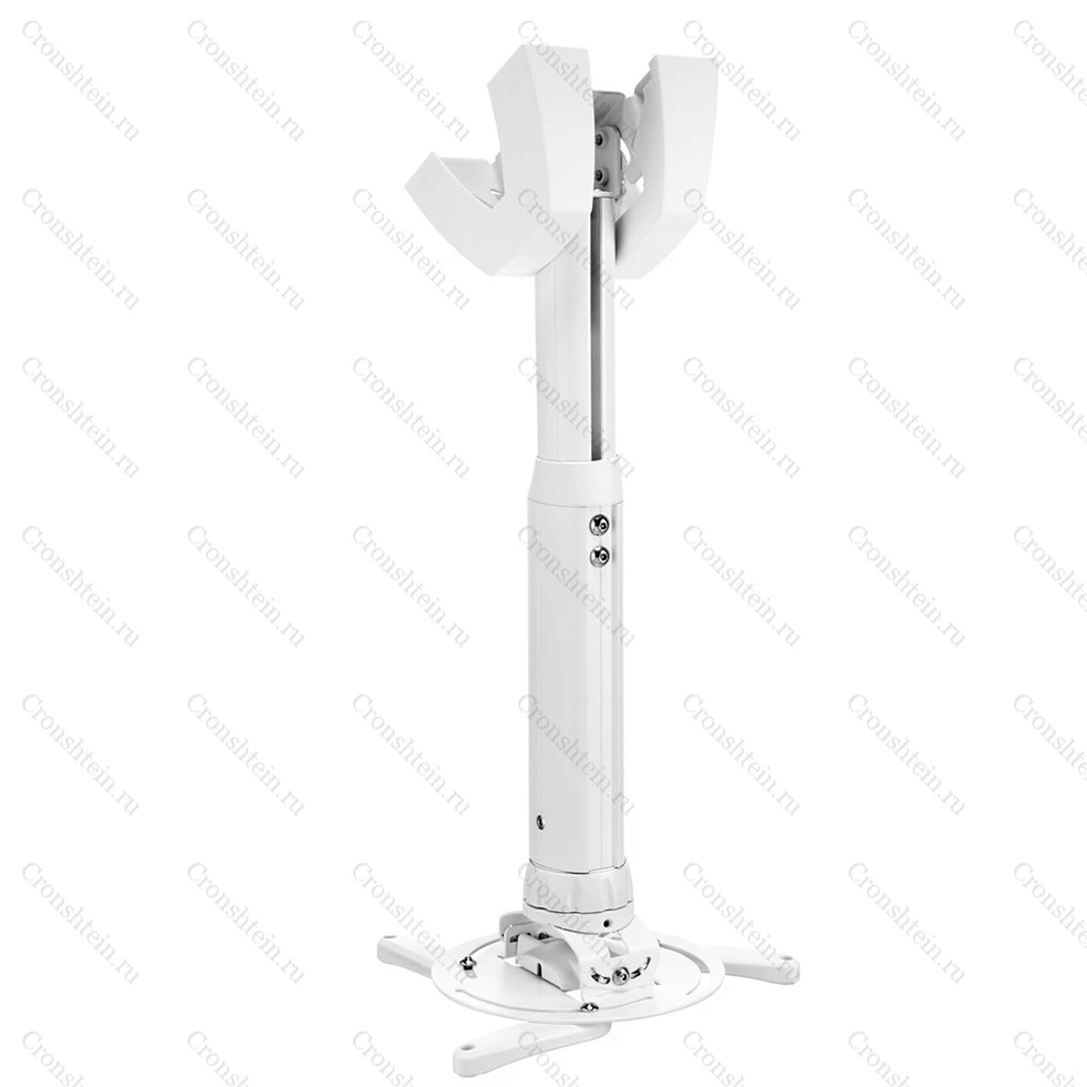 Потолочное телескопическое крепление для видеопроектора массой до 15 кг. Для плоских или наклонных потолков. Предусмотрен разворот на 360°, крен на 15°, кабель канал CIS. Расстояние до потолка - 400-550 мм. Цвет белый.