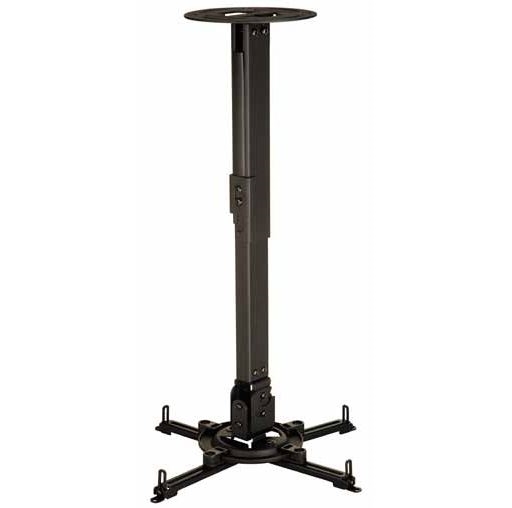 Потолочное/настенное крепление типа «паук» со штангой для проектора. Поворот: ±360°. Наклон: +30°.-5°. Крен: ±20°. Высота штанги (крепеж потолочный) 322-525 мм. Относ от стены (крепеж навесной) 354-558 мм. Габаритные размеры: (216-459)x(426-655)x(216-459) мм. Макс. нагрузка: 22 кг. Цвет серебристый.