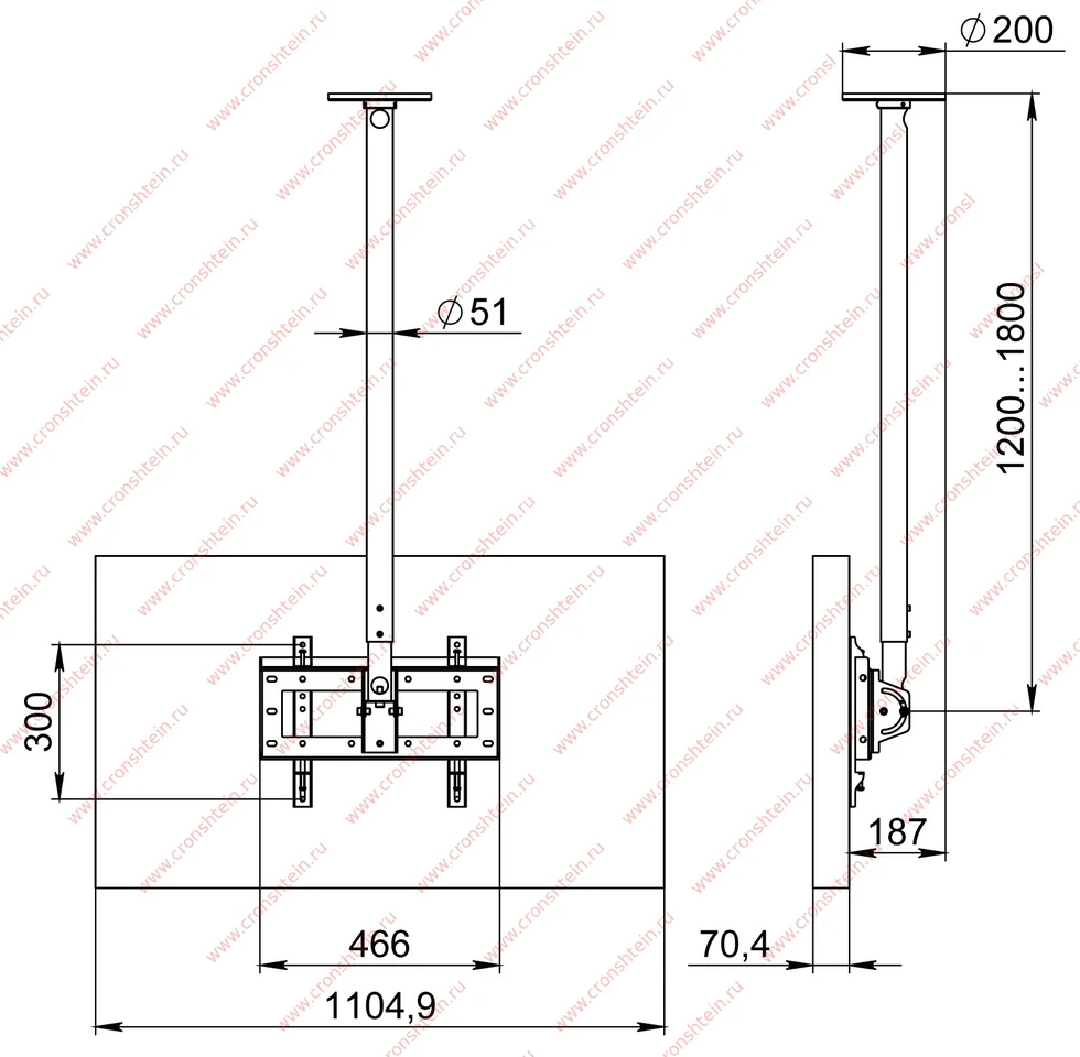 Потолочный кронштейн для среднего ТВ KingMounts 1CAM180