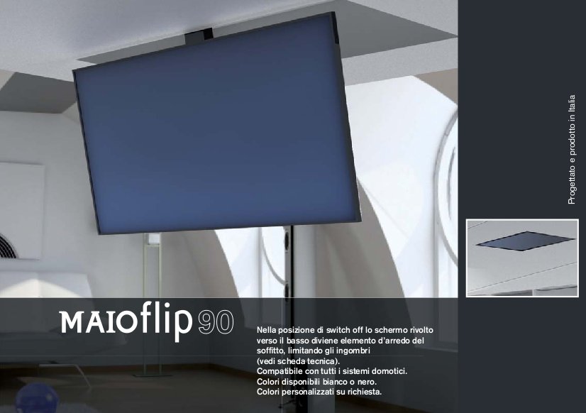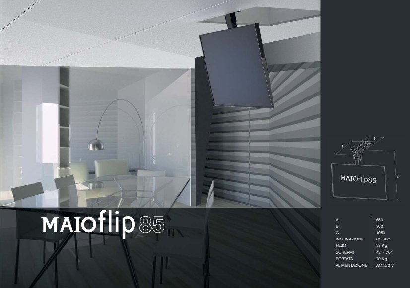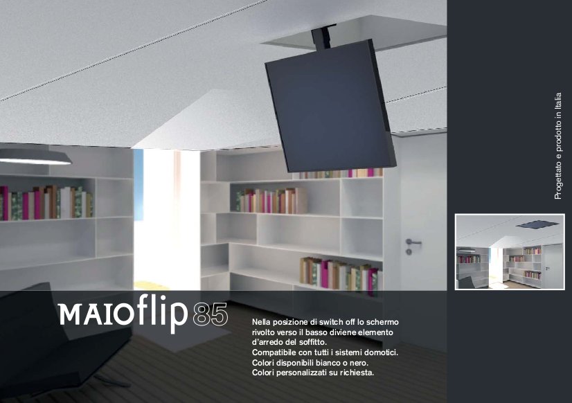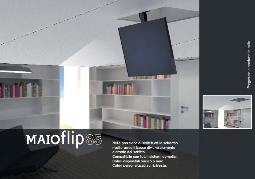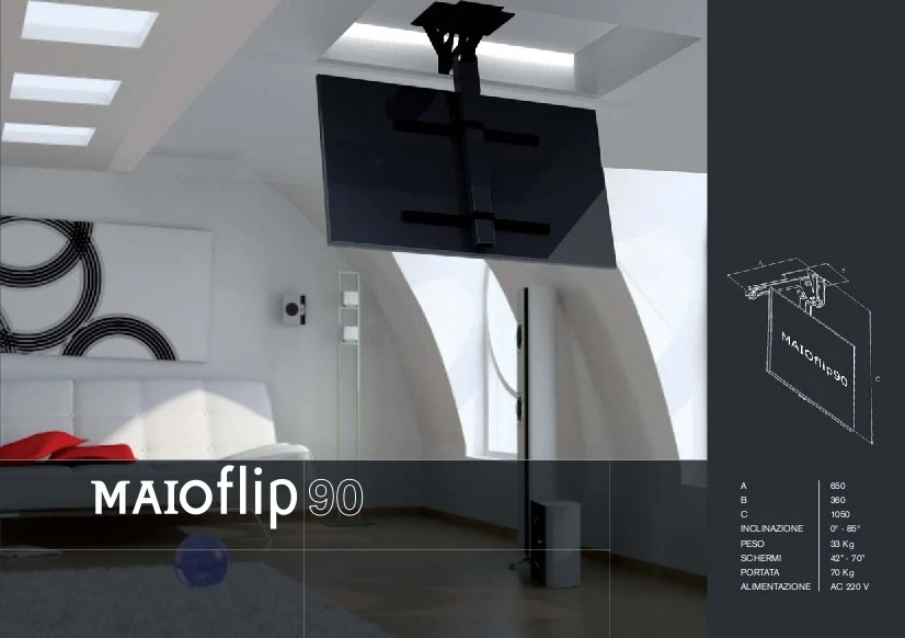 Моторизированный потолочный лифт для ТВ Maior Flip 85. арт 1457 от Итальянской компании Maior Eurotechnic s.r.l., предназначен для установки в потолочную нишу и позволяет устанавливать в ней телевизор с диагональю от 32 до 80 дюймов.