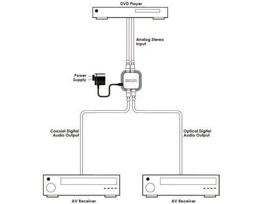 Преобразователь аналоговое стерео (2хRCA) в цифрового стереоаудио S/PDIF (RCA и TOSLINK) до 48 кГц.