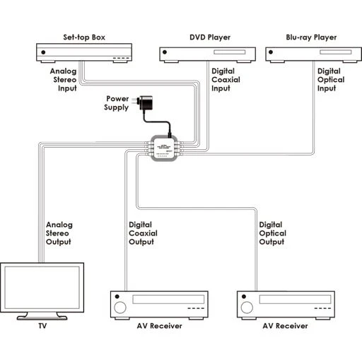 Преобразователь сигналов аналогового аудио (2хRCA) и S/PDIF (RCA и TOSLINK) с декодером Dolby Digital 5.