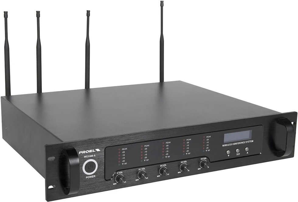 Приемник беспроводной конференц-системы, одновременное подключение 1-го пульта председателя и 4-х пультов делегата, всего 256.