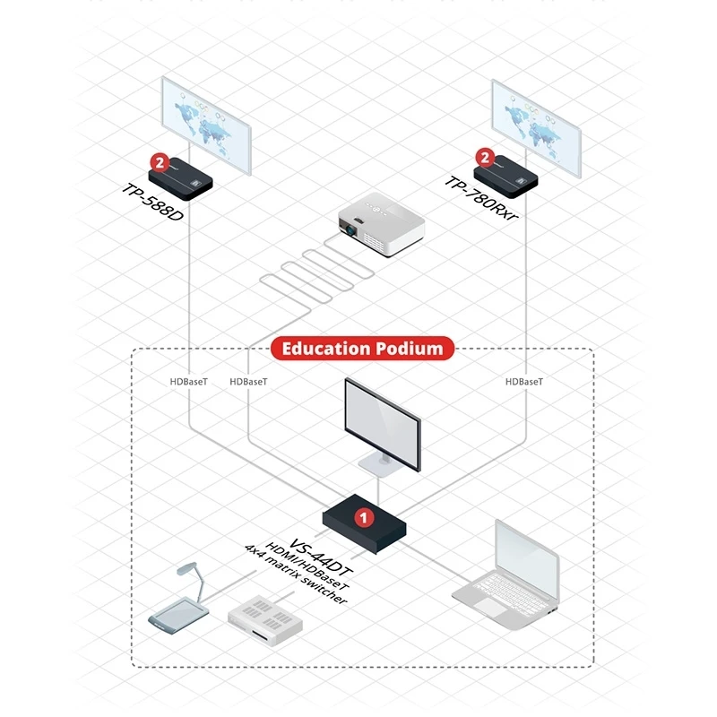 Приемник DVI/HDMI, RS-232, ИК и аналогового и цифрового аудио по витой паре HDBaseT; поддержка 4K.