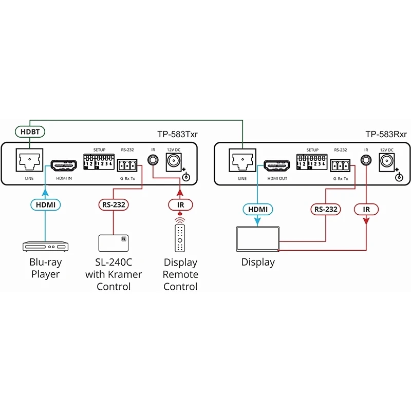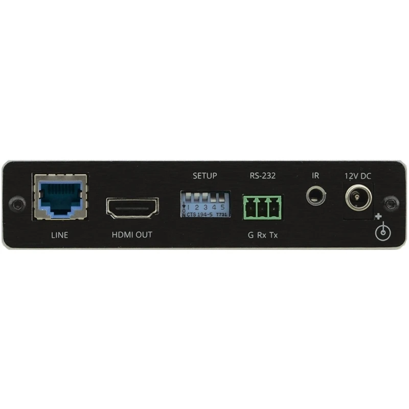 Приемник HDMI 4096x2160/60 (4:4:4), RS-232 (Phoenix 3-pin) и ИК (miniJack 3,5 мм) по витой паре HDBaseT; до 200 м.