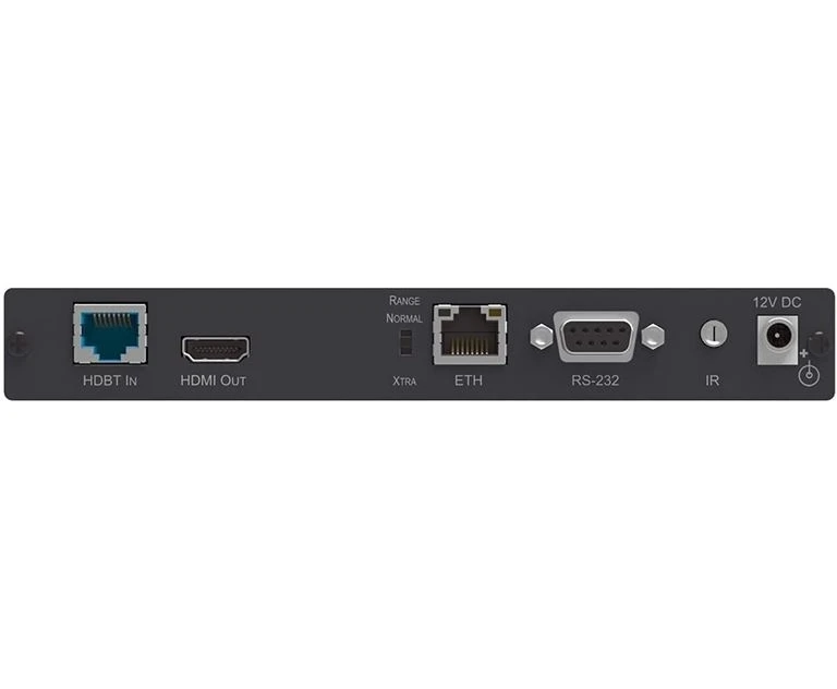 Приемник HDMI c HDCP, EDID, CEC и аудио, Ethernet (RJ45), RS-232 (D-sub-9), ИК (miniJack 3,5 мм) по витой паре CAT6, HDBaseT; поддержка 4K/60 (YUV 4:2:0), POE, расстояние приема до 70 м.