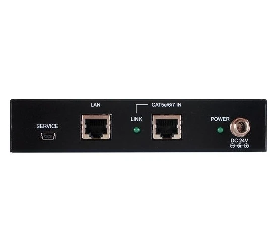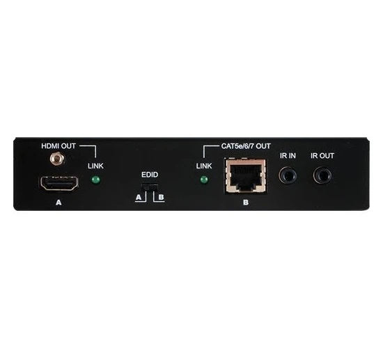 Приемник-распределитель 1:2 сигнала витой пары CAT5e (RJ45) в сигнал HDMI (4Kх2K, 3D с HDCP, EDID и LPCM 7.1CH), двунаправленного ИК (2х miniJack 3,5 мм), а также в проходной сигнал витой пары CAT5e (RJ45), HDBaseT, разъем Ethernet 100BaseT, расстояние передачи до 100 м.