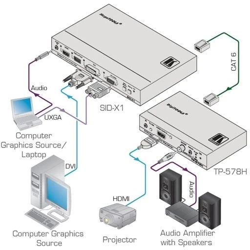 Приемник сигнала HDMI, RS-232 и ИК из кабеля витой пары (TP).