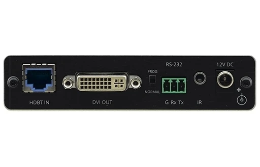 Приемник сигналов DVI 4K60 (4:2:0) с HDCP 2.2 и расширенным EDID, RS-232 и ИК из витой пары HDBaseT 1.0 с разъемом DVI-I, дальность 70 м (1080p/60) и 40 м (4K/60).