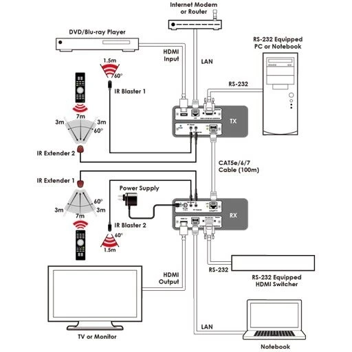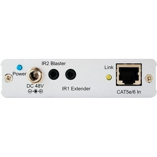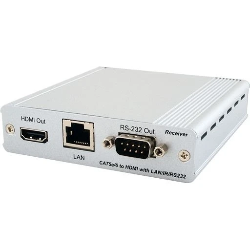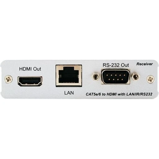 Приемник сигналов HDMI 1.4 1080p/60 (4Kх2K, 3D) с HDCP и CEC, Ethernet (RJ45), ИК (2х miniJack 3,5 мм) и RS-232 (D-sub-9) из витой пары CAT5e с PoC (Power over Cable) 48 В, HDBaseT, аудио до 192 кГц, расстояние приема до 100 м.