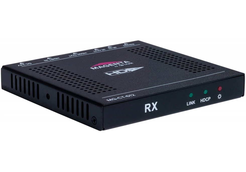 Приемник сигналов HDMI 1.4 4K/60 c HDCP 2.2, RS-232 и двунаправленного ИК из витой пары CAT5e c PoH от приемника (Power over HDBaseT, расстояние передачи до 70 м. Передатчик: MG-CT-611.