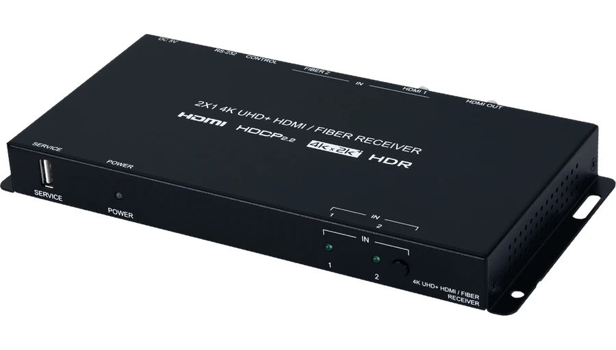 Приемник сигналов HDMI 4096x2160/60 (4:2:0) c HDR, HDCP 1.4, 2.0 и EDID, RS-232 из многомодовой оптической линии с разъемами LC , дополнительный вход HDMI. При специальном ПО работает как матричный коммутатор. Полоса пропускания 600 МГц. Управление по RS-232 и IP (Telnet и web-интерфейс). Совместимые устройства: CPLUS-12FTX, CPLUS-32FX.