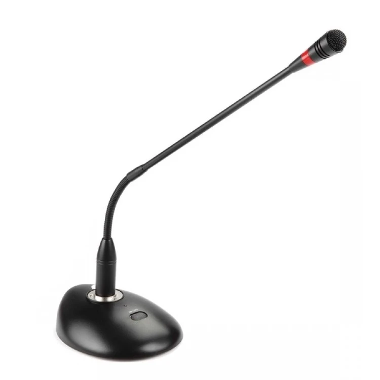 Профессиональный конденсаторный настольный микрофон «гусиная шея» для оповещения, с выключателем, питание от батареи или фантомное. Кабель XLR (вилка-розетка), 8 м. Длина 445 мм.