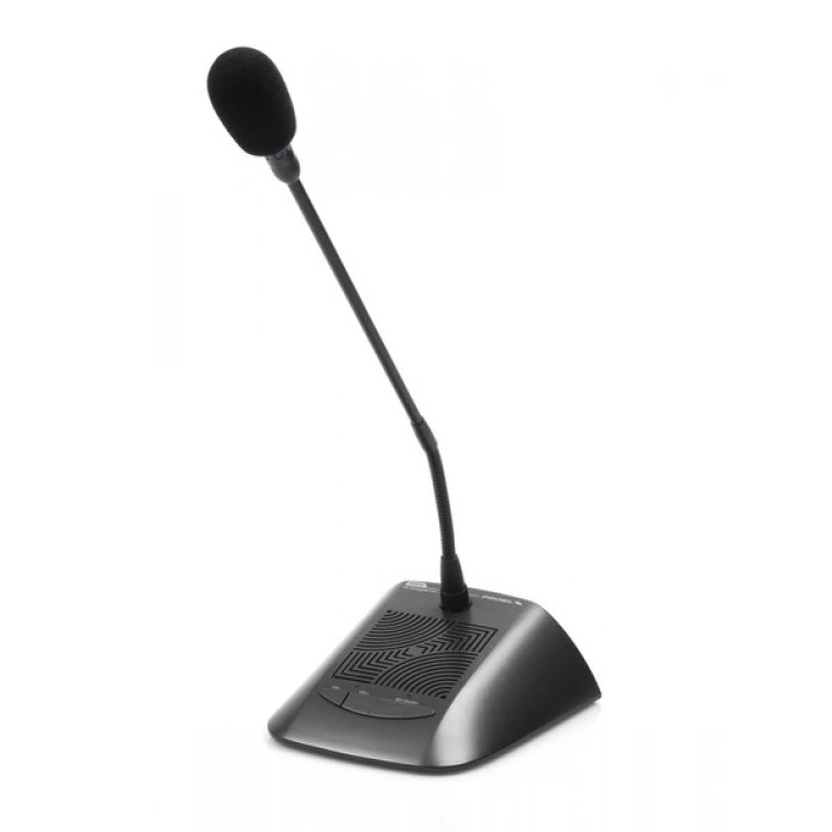 Проводной микрофонный пульт делегата системы PA CONFD со встроенным громкоговорителем, индикаторами включения, выход на наушники (miniJack 3,5 мм). Микрофон на «гусиной шее» 390 мм, кабель DIN8 2 м.