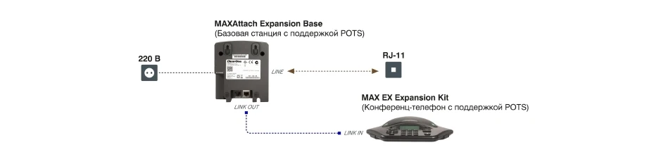 Проводной расширяемый телефон для конференц-связи, в комплекте одна док-станция и соединительные кабели.