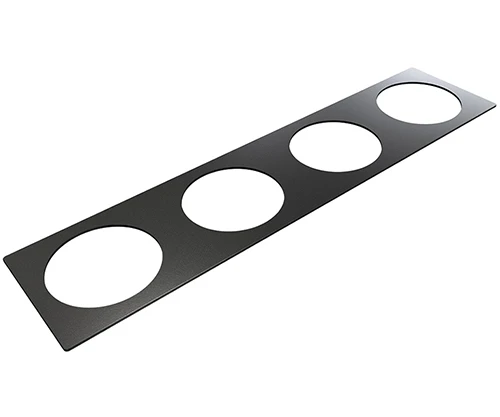 Прямоугольная рамка для установки 4 встраиваемых розеток. Габаритные размеры (ШxГxВ): 436,5х105х2 мм. Цвет черный.