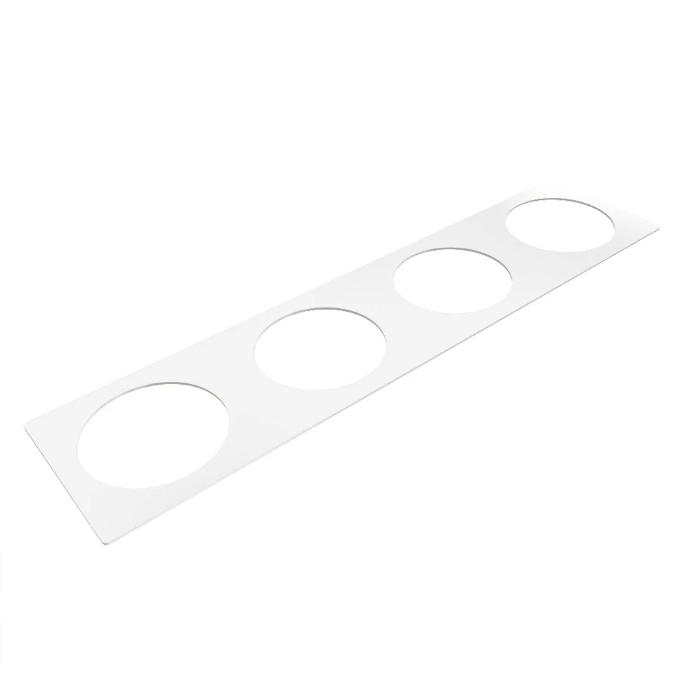 Прямоугольная рамка для установки 4 встраиваемых розеток. Габаритные размеры (ШxГxВ): 436,5х105х2 мм. Цвет белый.
