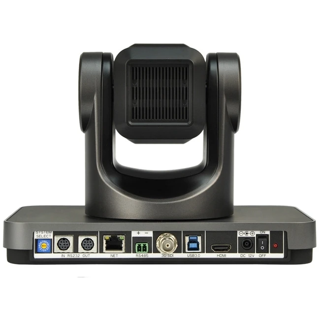 PTZ-камера 4K вещательного уровня, 12х оптическое и 16х цифровое увеличение, 4K/30, выходы HDMI 1.4/2.0, 6G-SDI. Поворот: ±170° по горизонтали, ±25° по вертикали, 255 пресетов. Управление по ИК, RS-232, RS-485.