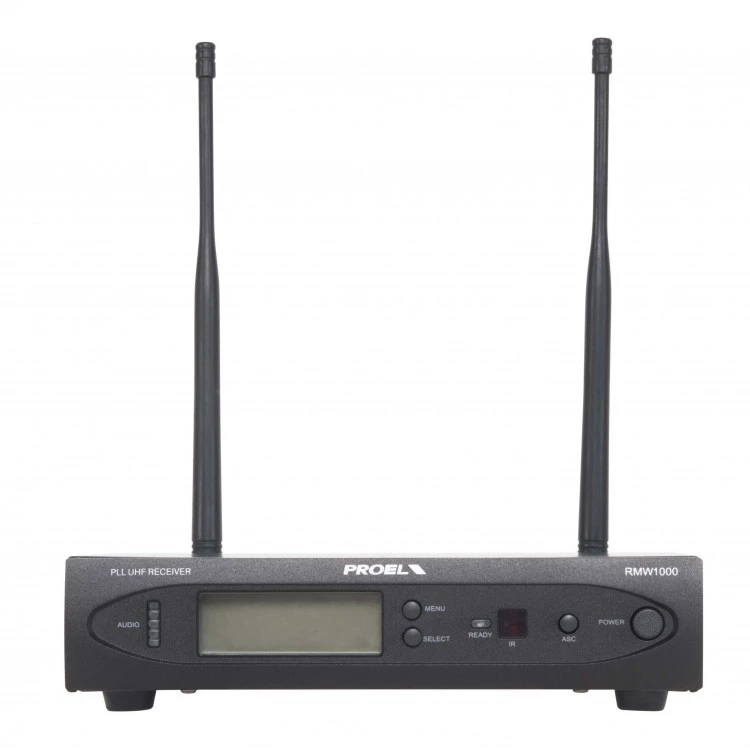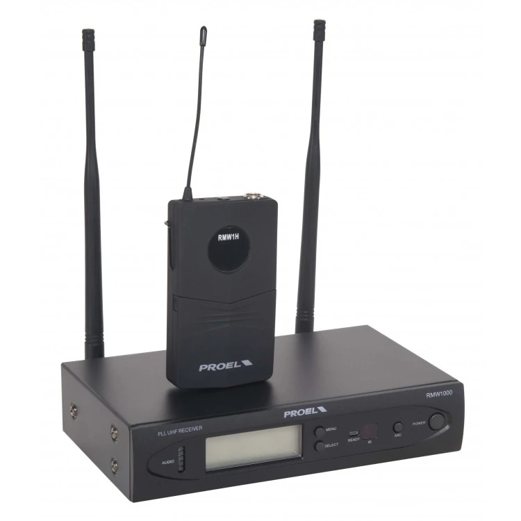 Радиосистема (приемник, поясной передатчик, наушный микрофон), 551–581 МГц, диапазон 50 Гц – 15 кГц, дальность 50 м, одновременно используются до 6 шт.