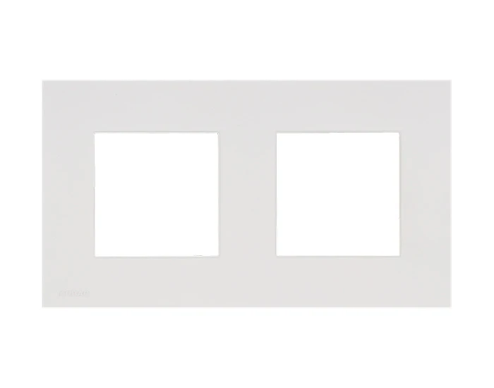 Рамка для двух модулей 45x45 мм (острые углы). Габаритные размеры: 148x80x12 мм. Цвет белый.