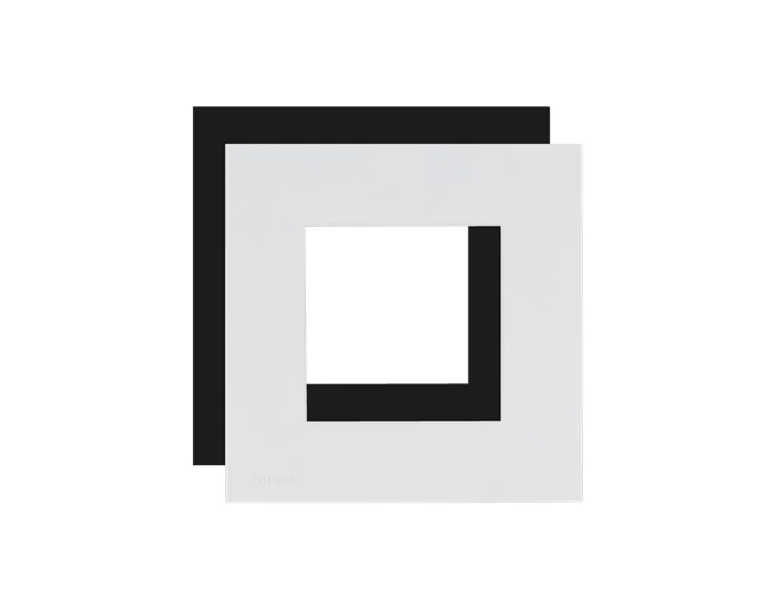 Рамка для одного модуля 45x45 мм (острые углы). Габаритные размеры: 80x80x12 мм. Цвет белый.