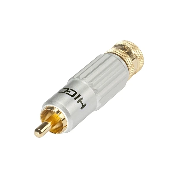 Разъем RCA (вилка), серебристый, черная маркировка.