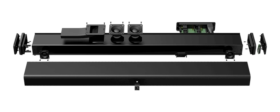 Саундбар 2х1,75'' + 2х2,5'' с усилителем класса D, 30–60 Вт. Вх: линейный (miniJack 3,5 мм), S/PDIF, HDMI с ARC, 40 Гц – 20 кГц (± 3 дБ). Цвет белый.