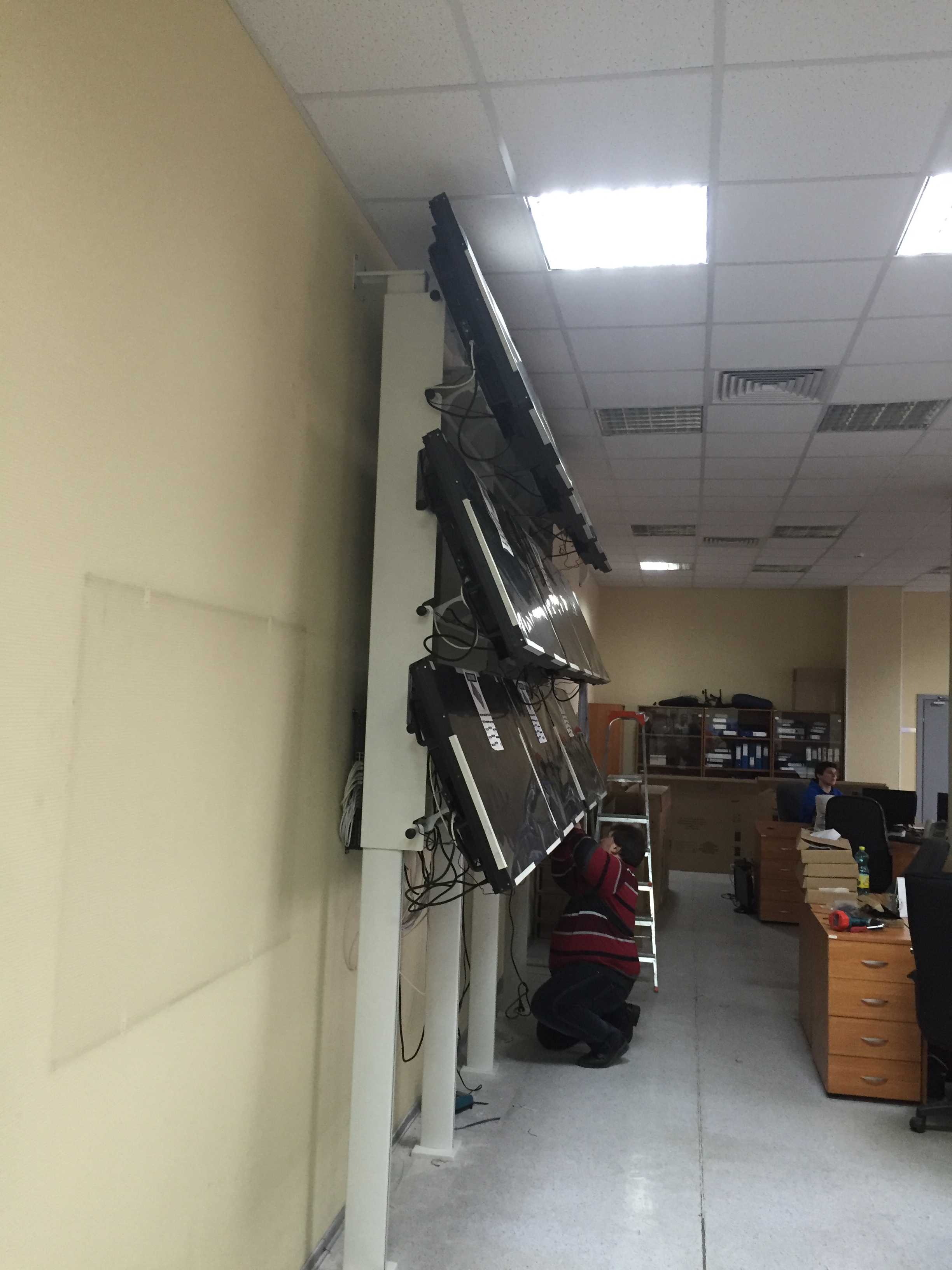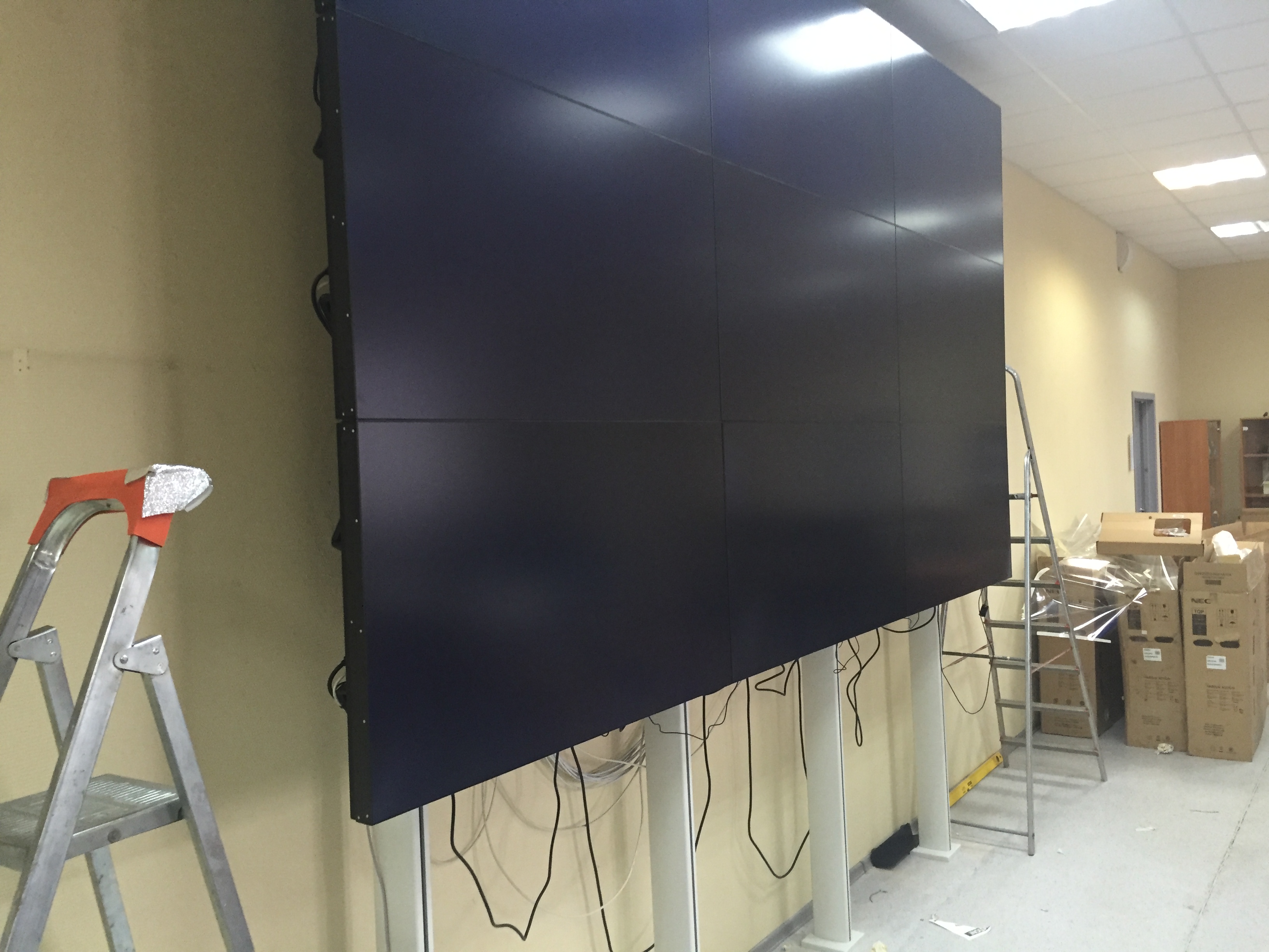 Сборка видеостены напольно-настенного типа крепления в ситуационном центре банка ВТБ24