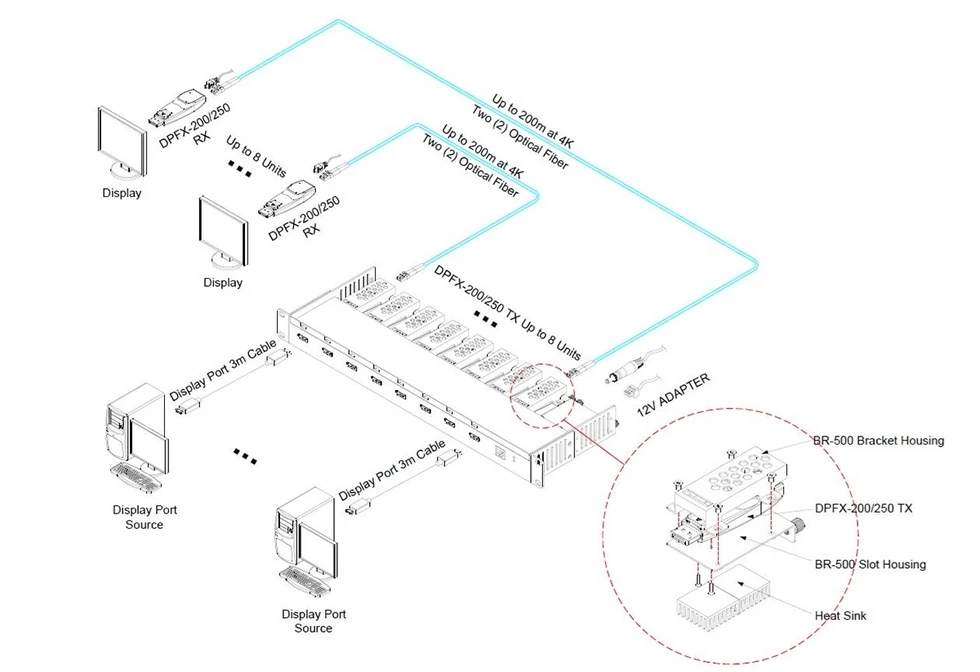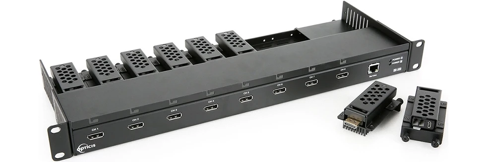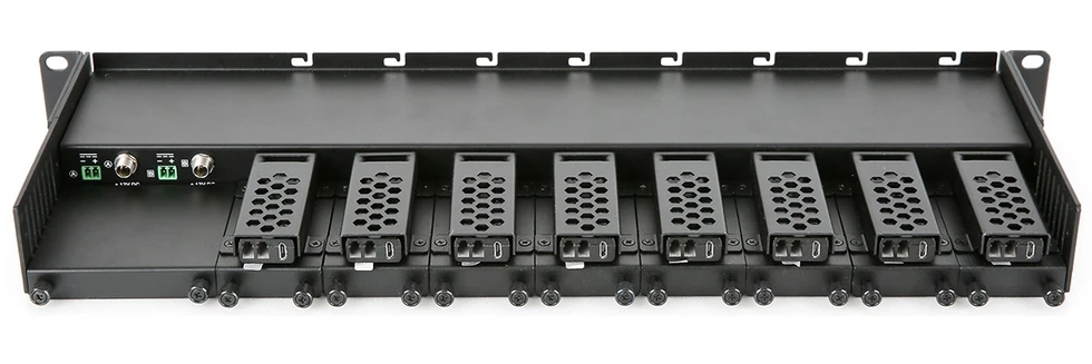 Шасси 19'' для монтажа 8 передатчиков DPFX-200, DPFX-250 или DPFX-300, управление по IP (web-интерфейс). Блоки питания поставляются отдельно.