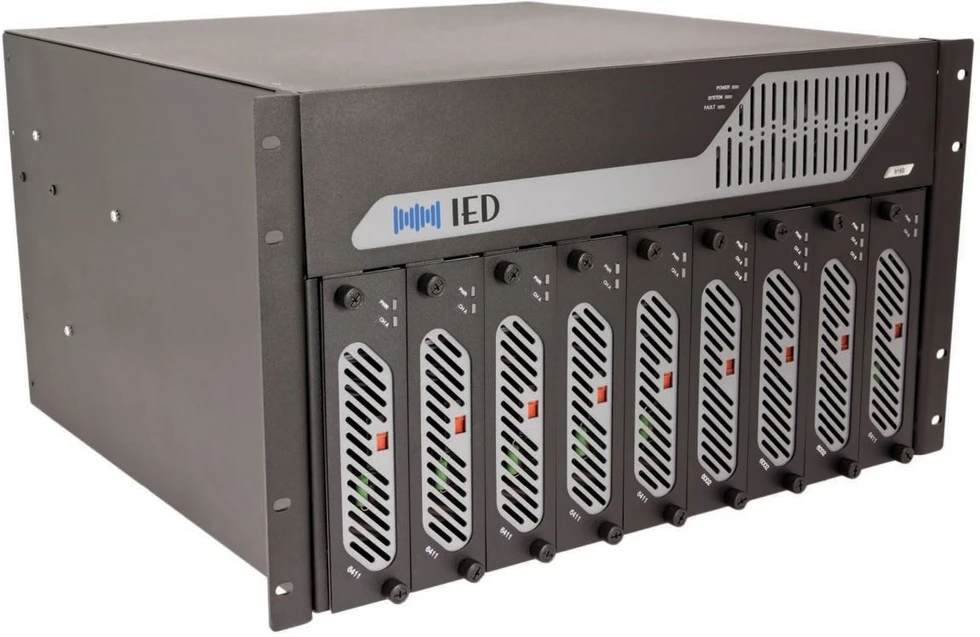 Шасси девятислотового усилителя мощности с DSP-процессором для системы оповещения GLOBALCOM, горячее переключение на запасной усилитель, входа локальные и по интерфейсу CobraNet, до 16 выходных зон. Для монтажа в стойку, высота 6U.