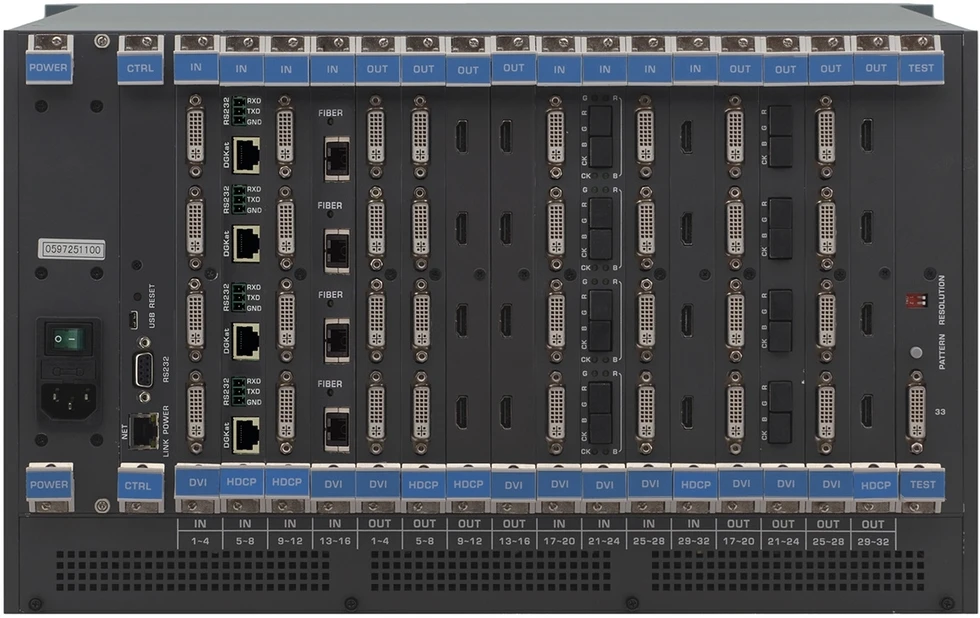 Шасси до 32x32 входов/выходов с шагом 4; поддержка 4K60 (YUV 4:2:0).