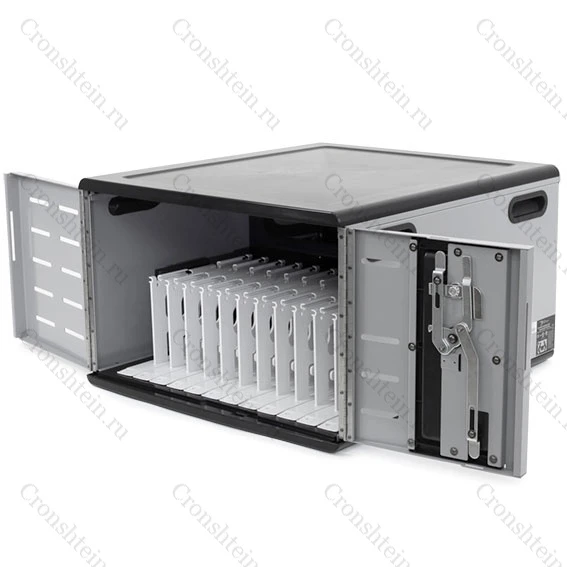 Универсальная система для хранения и зарядки 12 планшетов и ноутбуков до 14". Вместимость 12 устройств, шириня ячеек 28мм или 8 ячеек шириной 35мм. Максимальные размеры устройства 38.9 x 24.6 см (включая корпус и штур). Гарантия 10 лет на корпус, 2 года электронные компоненты и 1 год на провода.