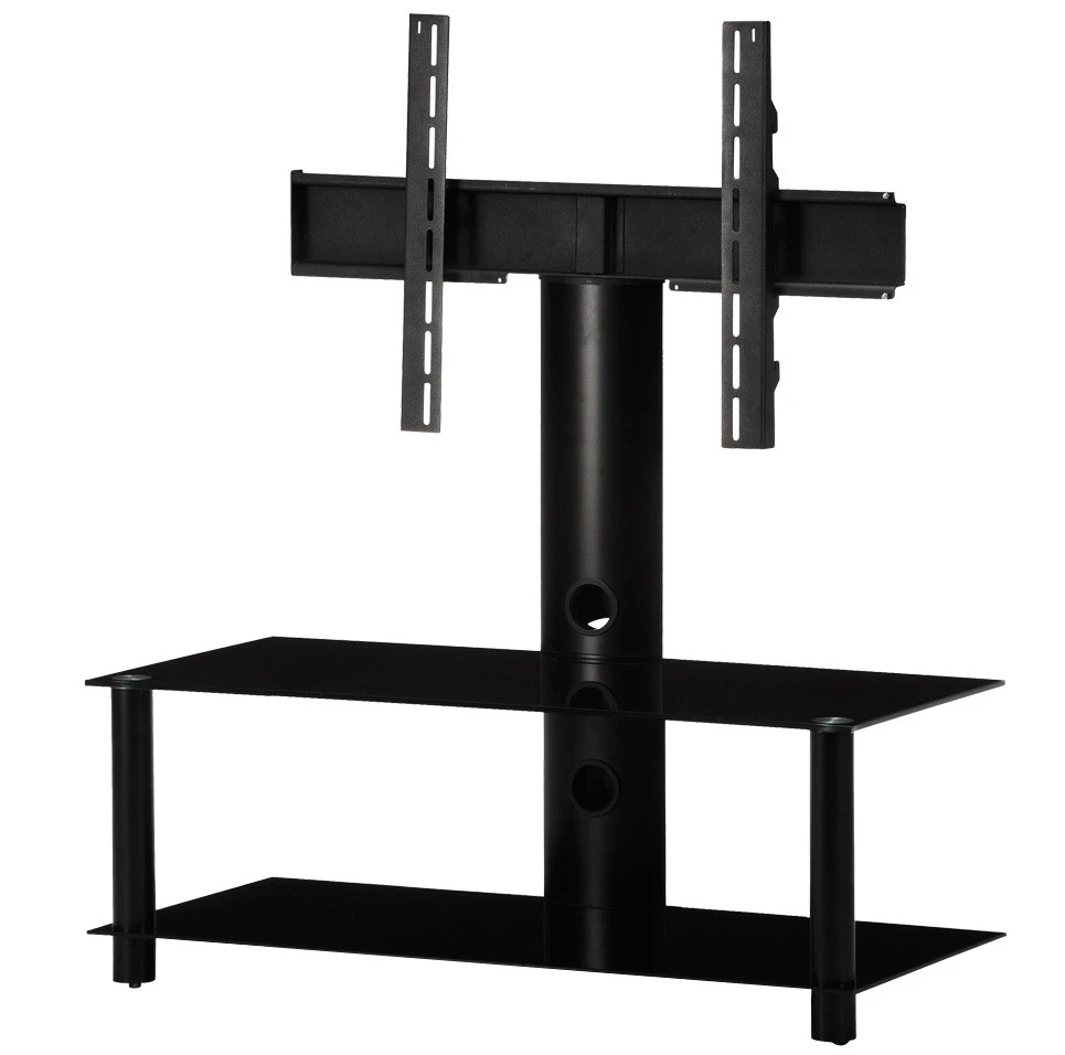 2 полки, крепеж для ТВ, max нагрузка 40кг, поворот 35o, 1210х950х440мм (ВхШхГ), черное стекло / серебристые ножки (на фото)