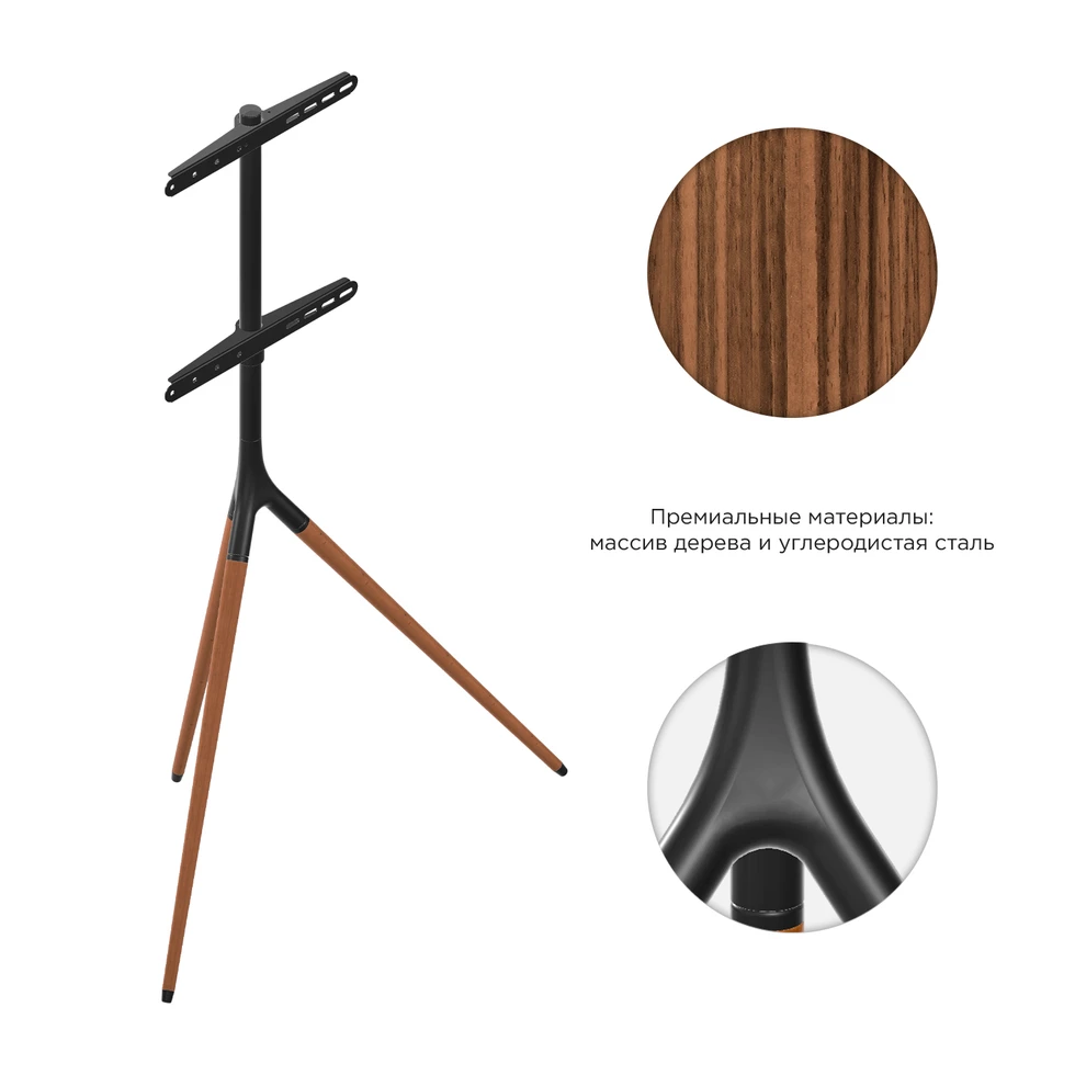 Стойка ONKRON TS1220 предназначена для большинства современных ЖК, плазменных и LED-телевизоров и панелей телевизоров и сенсорных панелей. Она подходит для телевизоров любых производителей, среди которых SAMSUNG, LG, Xiaomi. Предусмотренная диагональ ТВ – от 32 до 65 дюймов, максимальный вес – 35 кг. Изделие изготовлено из сверхпрочной стали в сочетании с гладким мелкозернистым буком. Это не только придает внешнему виду стойки дополнительную привлекательность, но и гарантирует безопасность Вашей панели. Стойка идеально подойдет как для дома, так и для квартиры современного дизайна. Она дополнит интерьеры, выполненные в таких стилях, как скандинавский, лофт, баухаус, эко-минимализм, арт-деко и др. Стойка TS1220 имеет стильный и художественный вид, она словно превращает плоские экраны в мольберты. Поэтому она прекрасным образом впишется в домашние кинотеатры, студии, современные офисы и для арт-пространства. Дополнительный плавный поворот на 360° обеспечит удобство просмотра из любой точки. Сочетание этой стойки и Вашего утонченного smart-ТВ добавит флер элегантности и художественности Вашему жилому помещению. Компактность и мобильность позволят вынести стойку в патио, чтобы наблюдать закат на террасе, или придвинуть к камину холодным зимним вечером.