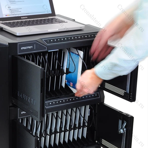 Тележка для зарядки и управления ПК (32шт) Ergotron 24-340-085. Устройство для зарядки и синхронизации продукции Apple. Синхронизация, заряд, обеспечение безопасности и управления до 32 устройств. Универсальная конструкция вмещает Apple Ipad,, Ipad мини и IPod Touch. Прочные стальные двери с прочными замками обеспечивают надежность. Полная зарядка всех устройств без сильной нагрузки. Совместимость: IPAD IPAD мини (4-го поколения), IPad (3-го поколения), IPad 2, Ipad, Ipod Touch (5-го поколения), IPod Touch (4-го поколения), IPod Touch (3-го поколения), iPhone 4S