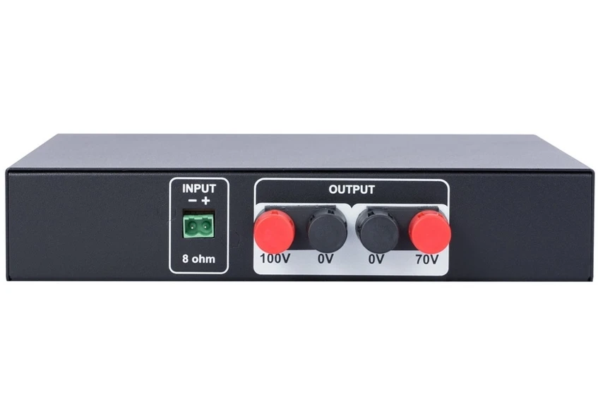 Трансформатор напряжения с постоянным коэффициентом трансформации для преобразования аудиосигнала, рассчитанного на нагрузку 8 Ом, в сигнал с уровнем 70 или 100 В.