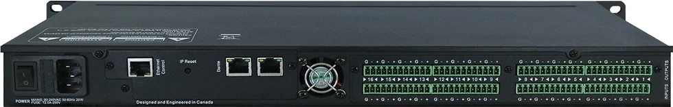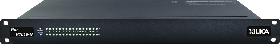 Транскодер аналоговых аудиосигналов и сигналов интерфейса Dante, 16х16 входов/выходов Phoenix с фантомным питанием 48 В, управление по IP, 1U для монтажа в стойку.
