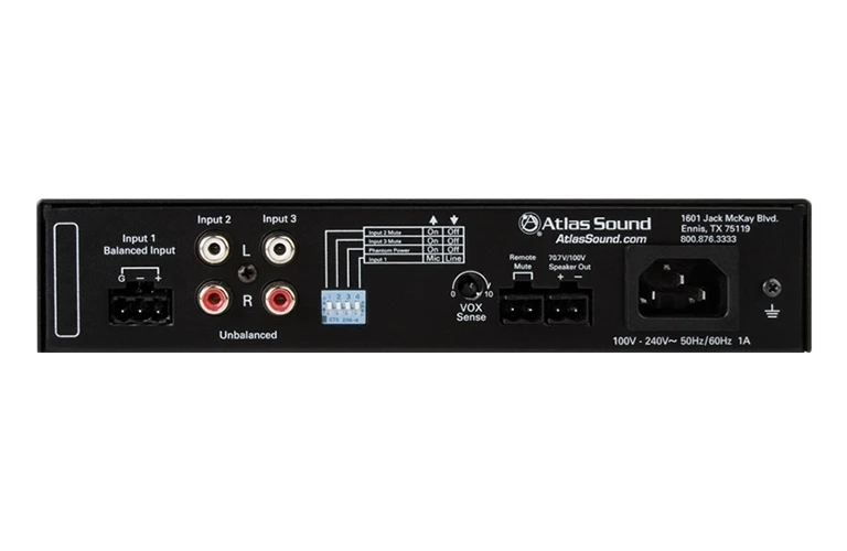 Трехканальный микшер и усилитель мощности 60 Вт – 70/100 В.