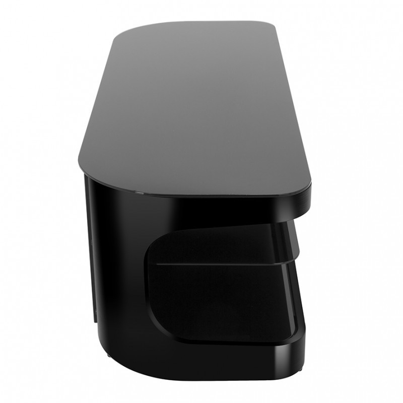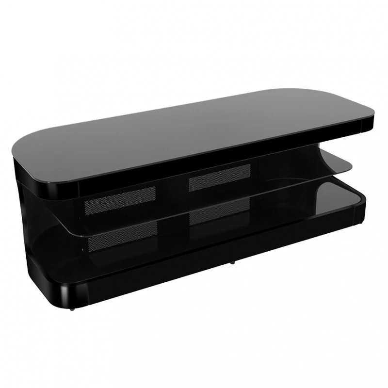 3 полки, max нагрузка 55 кг, 1250х430х450мм (ШхВхГ), черное стекло / черный глянец