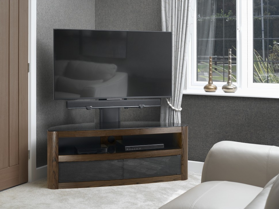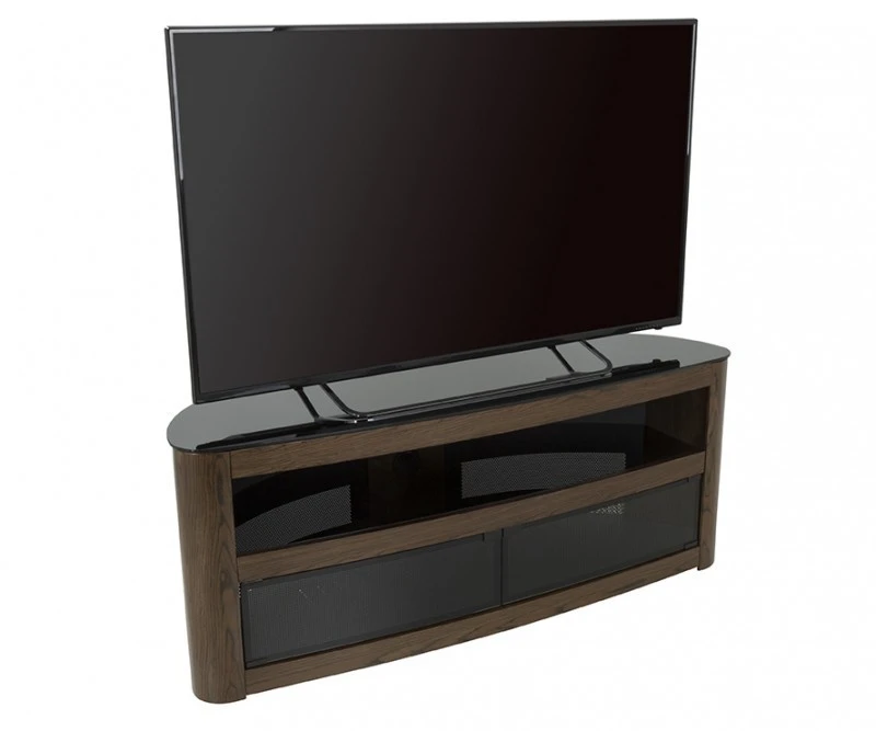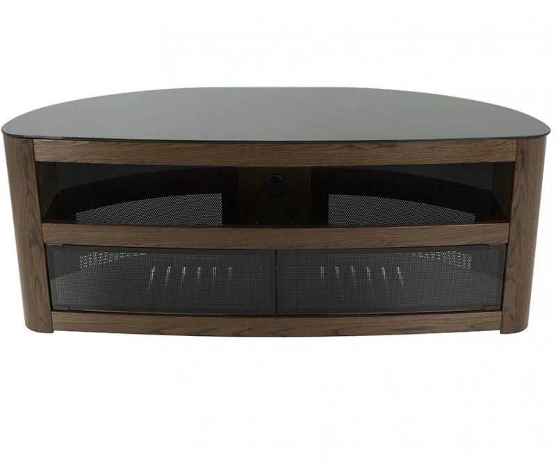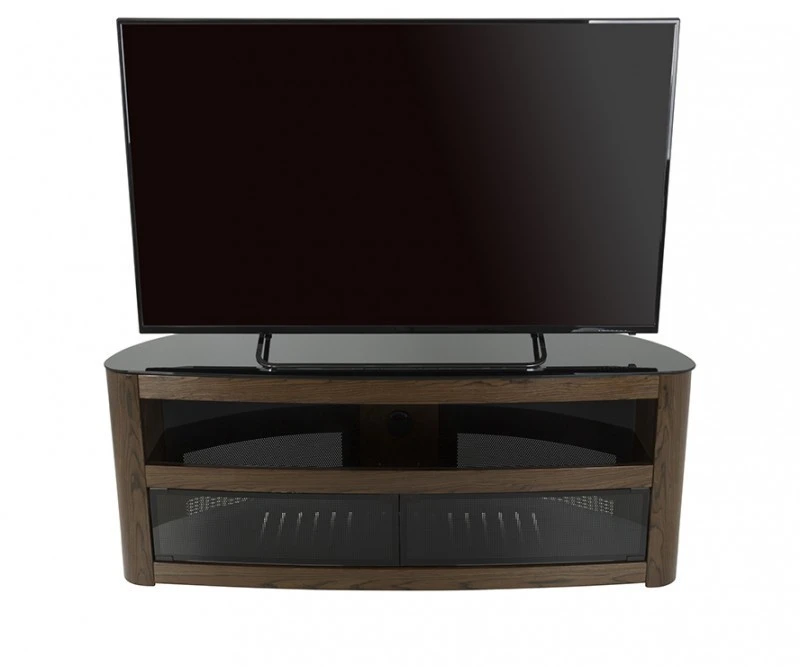 AVF FS125BURXW+FL602. арт 9389 - Красивая ТВ тумба из натурального шпона от всемирно известной английской фабрики AVF для больших телевизоров до 75 дюймов (до 60 кг). Используется закаленное стекло. Сзади удобный кабель-канал. Дверки пропускают ИК-сигнал, поэтому пульты будут работать с закрытыми дверками.