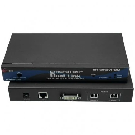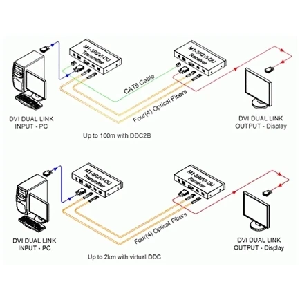 Удлинитель DVI-D Dual Link интерфейса посредством 2-х оптоволоконных патч-кордов и витой пары.