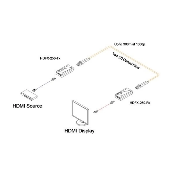 Удлинитель интерфейса HDMI 1.3 по двум многомодовым оптоволоконным патч-кордам с разъемами LC до 300 м.