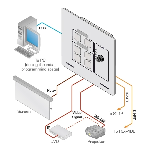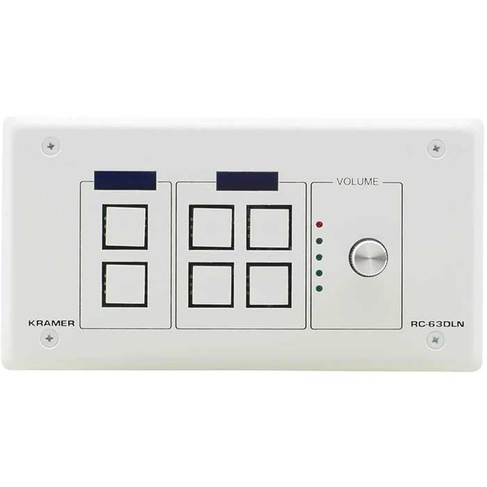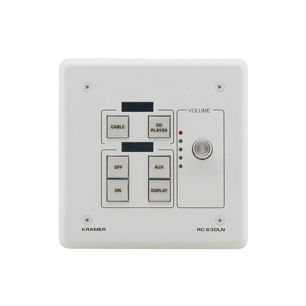Универсальная панель управления с 6-ю кнопками и поворотным цифровым регулятором громкости. Обучение командам от ИК-пульта. Программируемые, подсвечиваемые ЖК-индикаторы над группами кнопок.