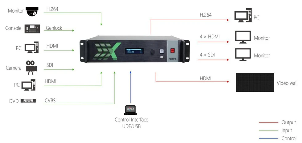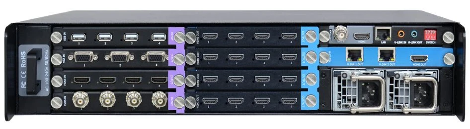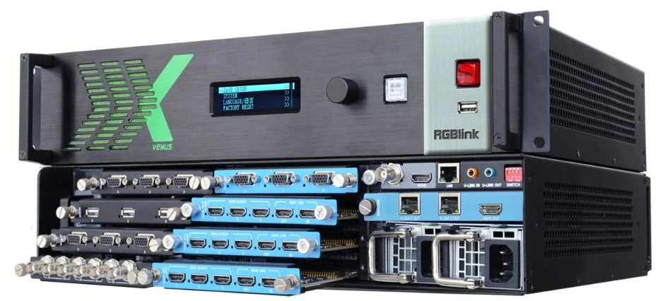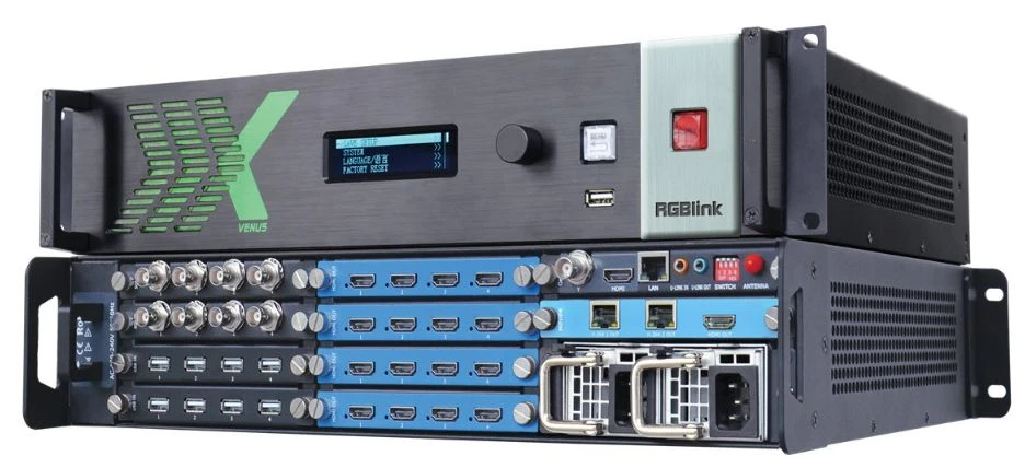 Универсальный видеопроцессор X2 на платформе RGBlink Venus имеет полностью модульную конструкцию, позволяющую использовать до 16x16 входов и выходов. И при этом всего 2 U в высоту. Он может применяться в качестве бесподрывного матричного коммутатора, презентационного процессора или процессора для видеостены. RGBlink Venus X2 можно каскадировать с помощью встроенных функций LayerLink™, uLink™, а функция Genlock обеспечивает слаженную работу нескольких устройств, как единой системы. Можно установить резервный блок питания без прерывания работы системы.