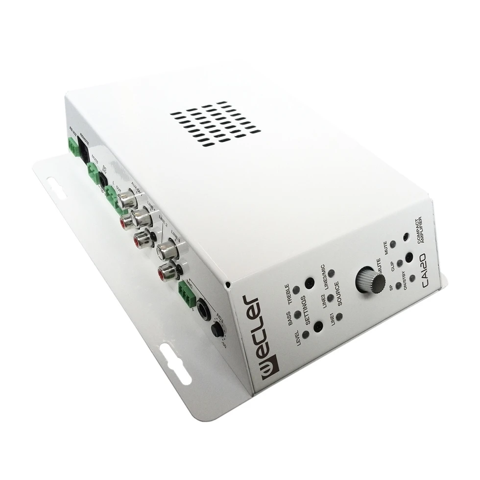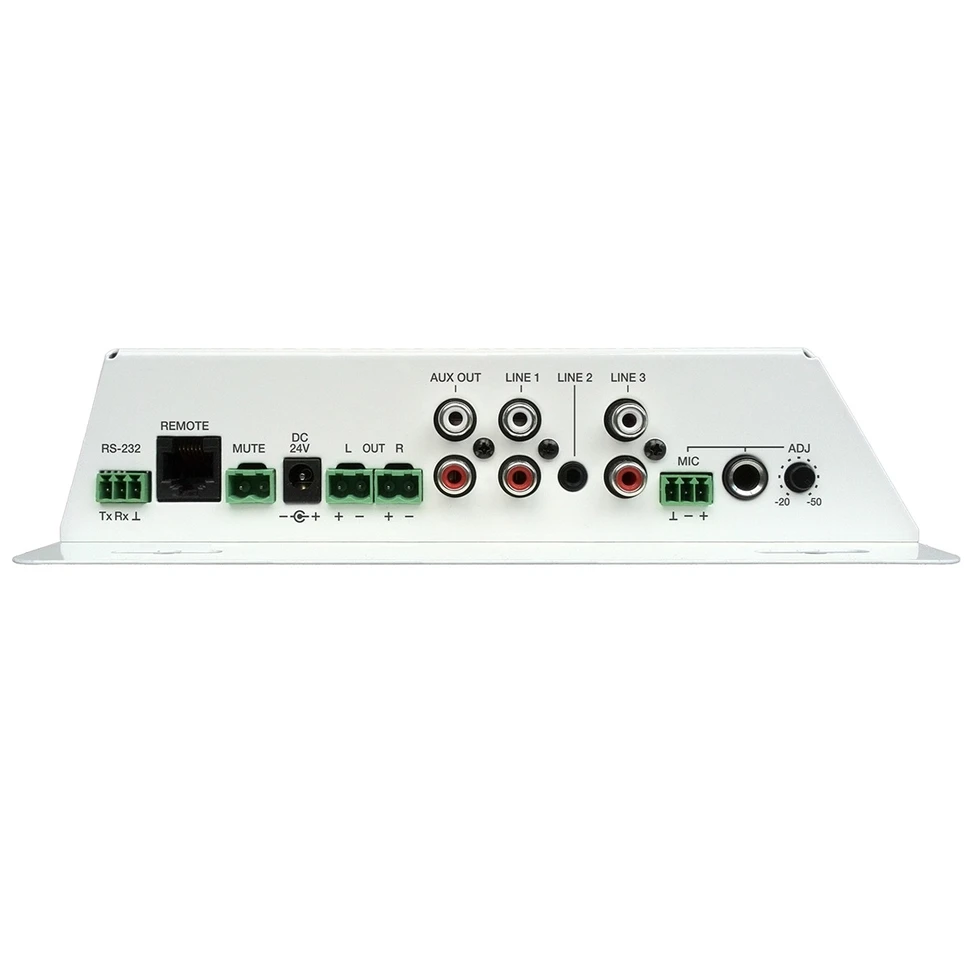 Усилитель 2х60 Вт – 4 Ом, 2х34 Вт – 8 Ом, энергосбережение. Входы: 1 х Mic (24 В) с приоритетом, 3 x Line, mute. Питание 24 В, управление по ИК, RS-232 и панели WPm. Настенный.